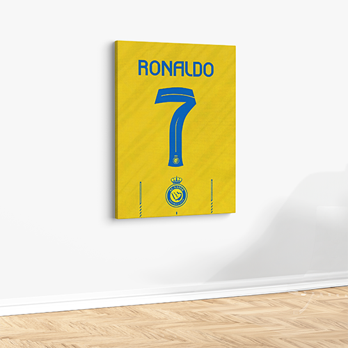 + Free ShippingElevate your décor with the “Cristiano Ronaldo T-shirt Back from Al Nassr Football Club” printed canvas. This unique artwork highlights Ronaldo’s iconic presence, style, and passion for the game, making it a perfect addition for football fans and collectors alike.