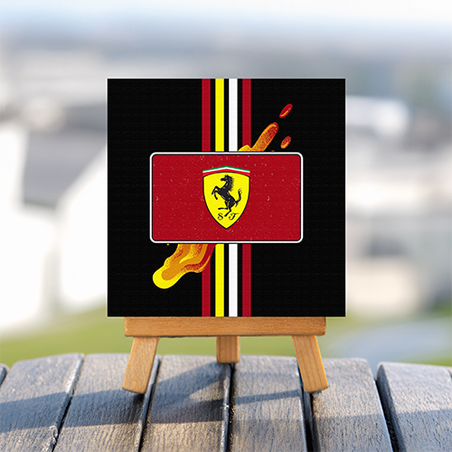 Ferrari logo mini printed canvas with wooden stand