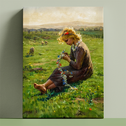 Girl with a Garland of Wildflowers by Virginie Demont-Breton art printed canvas