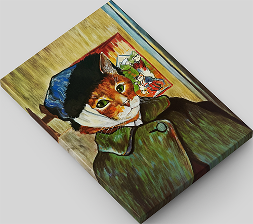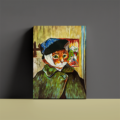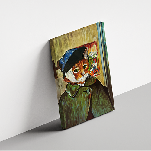 Self Portrait by Vincent Van Gogh but a cat art printed canvas