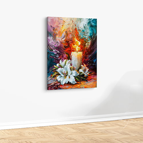 + Free ShippingElevate your décor with “The Magic of Still Life Art” printed canvas. This captivating artwork blends the glow of a candle with delicate lilies, brought to life through vibrant, expressive brushstrokes—making it a perfect addition for art lovers and collectors alike.